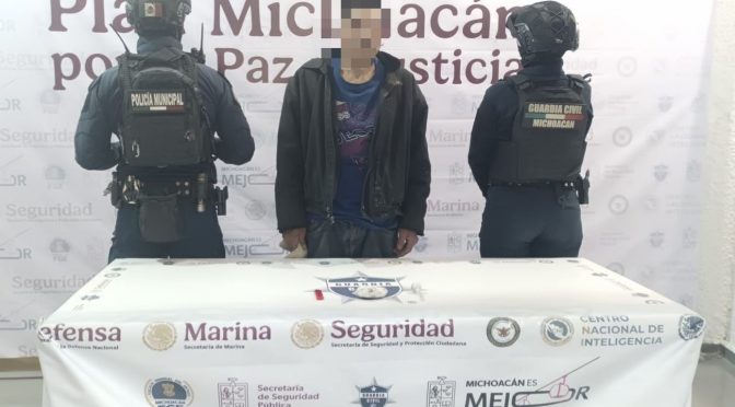 • En la localidad de Opopeo Salvador Escalante, Michoacán, 16 de enero de 2026.- Elementos de la Secretaría de Seguridad Pública (SSP) detuvieron a un hombre en posesión de 40 dosis de sustancia granulada con las características propias de la metanfetamina, producto de las labores del Plan Paricutín en el municipio de Salvador Escalante. Fue […]
