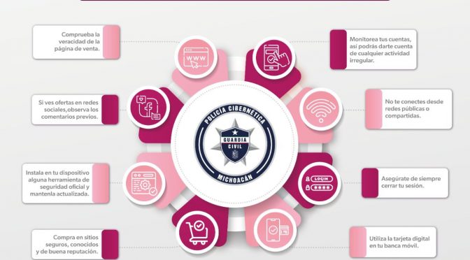 • Debido a los posibles fraudes en compras virtuales que son más comunes en estas fechas, la Policía Cibernética de la SSP, emite una serie de recomendaciones para prevenir y disuadir ilícitos digitales. Morelia, Michoacán, 16 de noviembre del 2022.- Con la intención de cuidar el bien patrimonial y económico de las y los michoacanos, […]