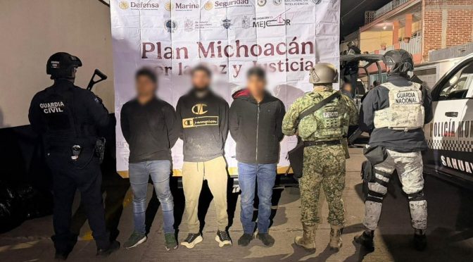 • También se aseguró un inhibidor de señal y más de 30 dosis de mariguana Jiquilpan, Michoacán, 24 de febrero del 2026.- Como resultado de un operativo interinstitucional, elementos de las secretarías de Seguridad Pública (SSP), de la Defensa Nacional (Defensa) y Guardia Nacional (GN) detuvieron a tres hombres en posesión de tres armas de […]