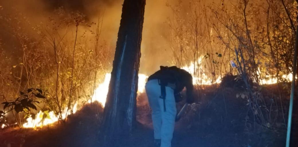 Angangueo, Michoacán, 5 de abril del 2023.- Personal de la Secretaría de Seguridad Pública (SSP), atendió de manera oportuna un llamado de emergencia que alertaba sobre un incendio forestal en el municipio de Angangueo; tras las acciones, lograron sofocar las llamas.