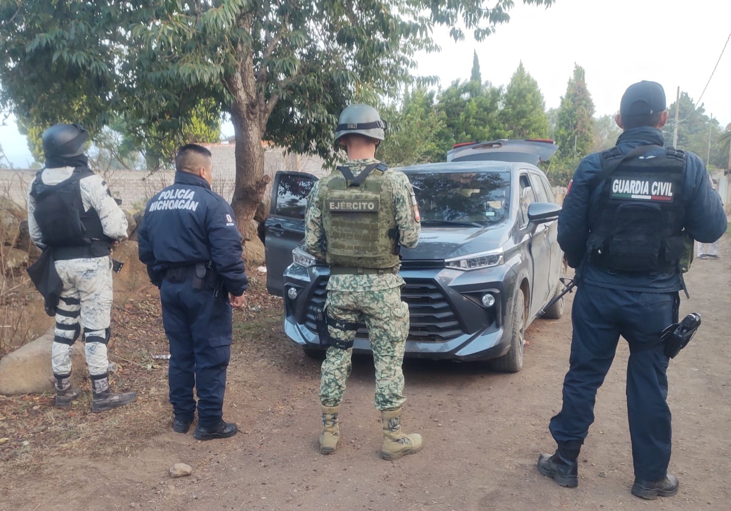 Pátzcuaro, Michoacán, 18 de junio de 2023.- Los elementos de la Guardia Civil, de la Secretaría de la Defensa Nacional (Sedena) y de la Guardia Nacional (GN) llevaron a cabo un operativo de prevención y vigilancia en el poblado de San Pedro Pareo, perteneciente al municipio de Pátzcuaro, donde recuperaron un vehículo que recientemente había sido robado con violencia.