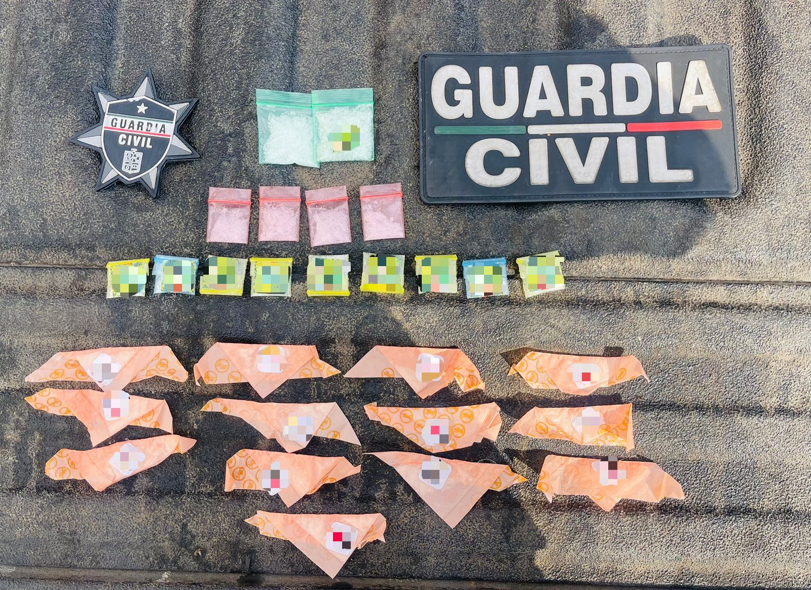 En Uruapan, los elementos de la Guardia Civil realizaban patrullajes de vigilancia en dos distintas colonias, cuando visualizaron a dos hombres que intentaron evadir a los uniformados, motivo por el que se les marcó el alto y se procedió a inspeccionarlos; donde les fueron localizados 28 y 20 envoltorios de sustancia granulosa, respectivamente, con las características propias de la metanfetamina.