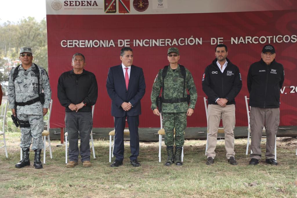 En representación del gobernador Alfredo Ramírez Bedolla, el secretario de Seguridad Pública, José Alfredo Ortega Reyes encabezó este acto que tiene como fin dar cumplimiento al Programa de Destrucción de Narcóticos, incautados por el Ejército Mexicano, la Marina – Armada de México, la Guardia Nacional, así como las Fiscalías Generales de la República y del Estado, la Secretaría de Seguridad Pública (SSP) y las Policías Locales.