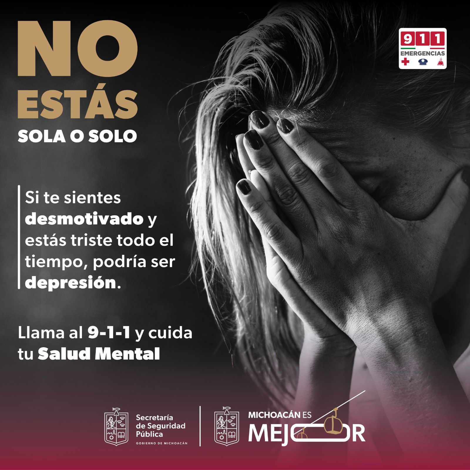 Morelia, Michoacán, 15 de enero de 2026.- La línea de emergencias 911 cuenta con un servicio especializado de apoyo para crisis de salud mental, orientado a brindar atención inmediata a personas que enfrentan situaciones de crisis emocional, ansiedad, depresión o conductas que atenten contra la salud o la propia vida, informó la Secretaría de Seguridad Pública (SSP).