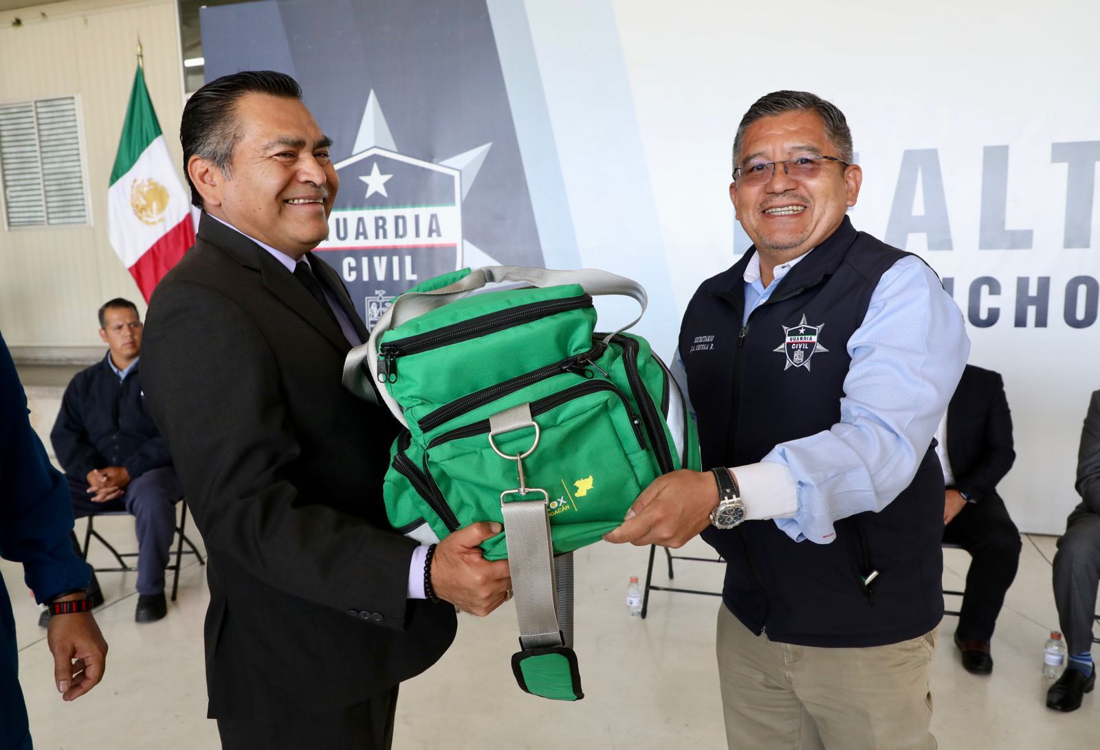En este evento encabezado por el titular de SP, acompañado de representantes de la sociedad médica y de protección civil del estado, en el Hangar de Servicios Aéreos de la SSP, se le reconoció como “Hangar Seguro” y de manos de Ortega Reyes les fue entregado un equipo toxicológico de vuelo a los agentes de esta área, con el objetivo de refrendar el compromiso por la seguridad y la salud de la población michoacana.