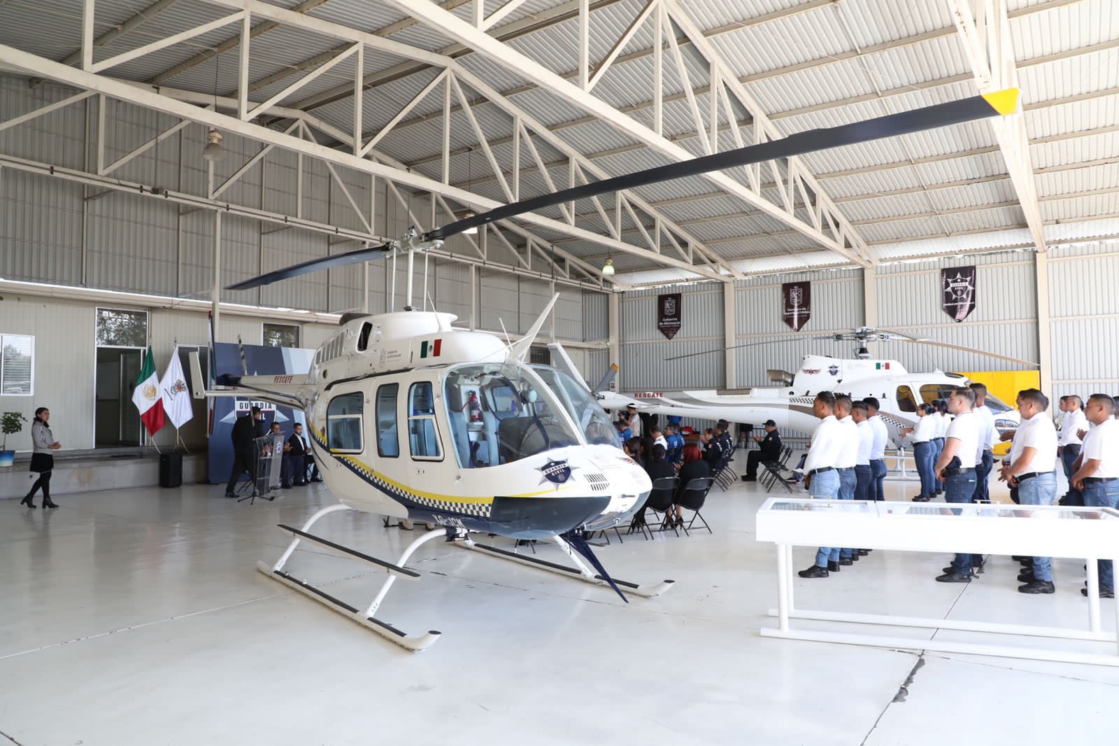 Morelia, Michoacán, 29 de noviembre del 2022.- “La profesionalización de la Guardia Civil y la constante capacitación de nuestro sector aéreo, les permite mantenerse actualizados en nuevas herramientas médicas y tecnológicas”; enfatizó el Secretario de Seguridad Pública, Mtro. José Alfredo Ortega Reyes, durante la inauguración del “Hangar Seguro” de la Dirección de Servicios Aéreos de la Secretaría de Seguridad Pública (SSP), donde también fue entregado un botiquín toxicológico aeromédico.