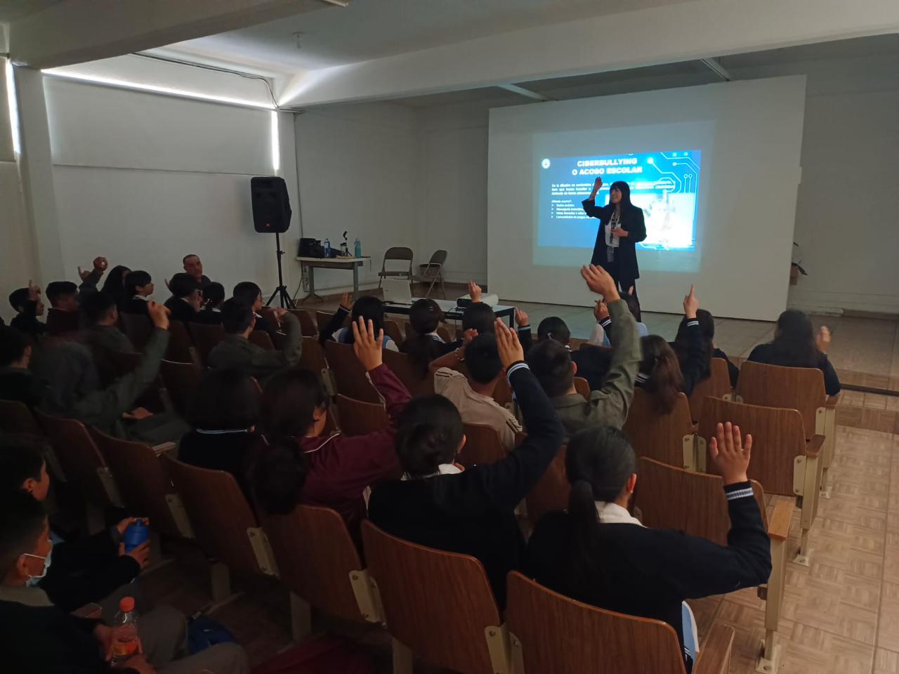 Alrededor de 270 alumnas, alumnos, maestras y maestros de este centro educativo; escucharon y aprendieron sobre los temas de ciberacoso, juegos en línea, sexting, ciberbullying, privatización de redes sociales y uso responsable de la líneas de emergencias.