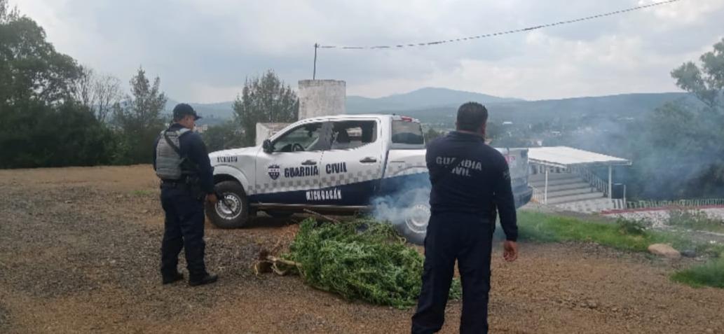 Al encontrarse en patrullajes de disuasión del delito en la localidad de Huatzanguio de esta demarcación, los guardias civiles visualizaron en las inmediaciones de un predio, lo que aparentaban ser varias plantas de cerca 1.50 metros de altura, similares al estupefaciente.