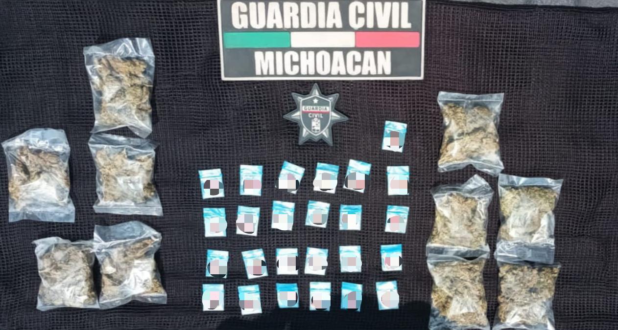 Uruapan, Michoacán, 17 de julio del 2023.- Como resultado de los despliegues policiales en la ciudad de Uruapan, efectuados por los elementos de las Secretarías de Seguridad Pública (SSP), y de la Defensa Nacional (Sedena); fueron detenidos cuatro presuntos distribuidores de droga en posesión de más de 40 envoltorios de diferentes narcóticos.