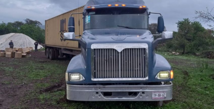 Minutos después sobre un camino de terracería localizaron la unidad reportada como robada, y en el sitio se encontraba un hombre que manipulaba las cajas que transportaban en el tractocamión, mismas que contenían tenis en su interior; posteriormente, vieron una camioneta Chevrolet conducida por un masculino, mismo que intentó huir del lugar. Al darle alcance y solicitarle una revisión, le fueron halladas diversas de las cajas en mención.